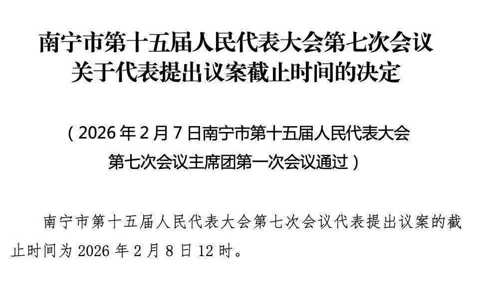 >南宁市十五届人大七次会议关于代表提出议案截止时间的决定