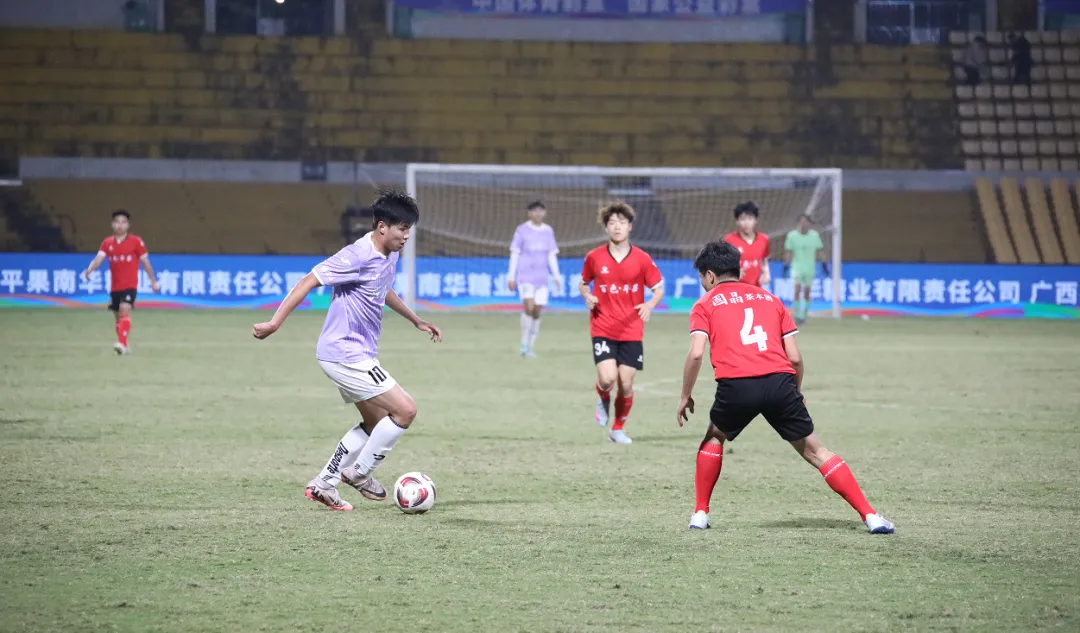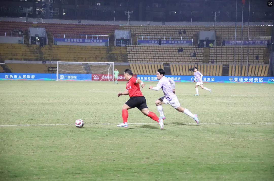 本场焦点之战在平果国晶体育场如期上演,夜幕降临后,体育场内灯火通明、人声鼎沸,氛围十分热烈。大批本土球迷挥舞旗帜、高喊助威口号,用最饱满的热情为百色市平果国晶队加油鼓劲,现场欢呼声、呐喊声此起彼伏,响彻整个体育场。此前赛事中,百色市平果国晶队凭借两场酣畅淋漓的胜利稳稳占据桂西赛区前列,全队士气正盛、球员状态火热,攻防配合愈发默契;反观对手南宁市江南区队,凭借犀利的边路突破和稳健的防守反击战术在赛区内声名在外,攻防两端实力均衡、战术执行力强,此番对决看点十足。