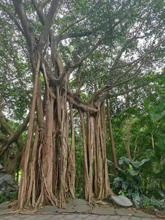行至山腰,雨林大观的奇景让人眼前一亮。这里的榕树树根垂落如帘,落地生根便成了“独木成林”的盛景;高大的乔木长出宽厚的板根,如巨人的手掌支撑着参天身躯。