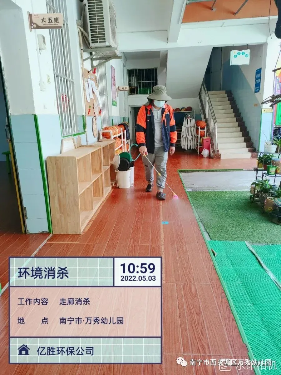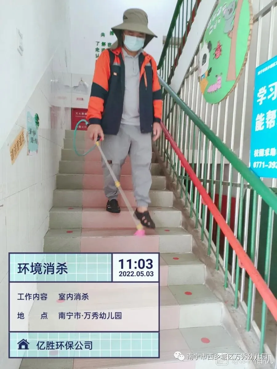 5月3日专业消杀团队对校园室内室外活动场地等关键区域实施密集消毒,做到全方位的防疫环境消杀,助力校园疫情防控工作。