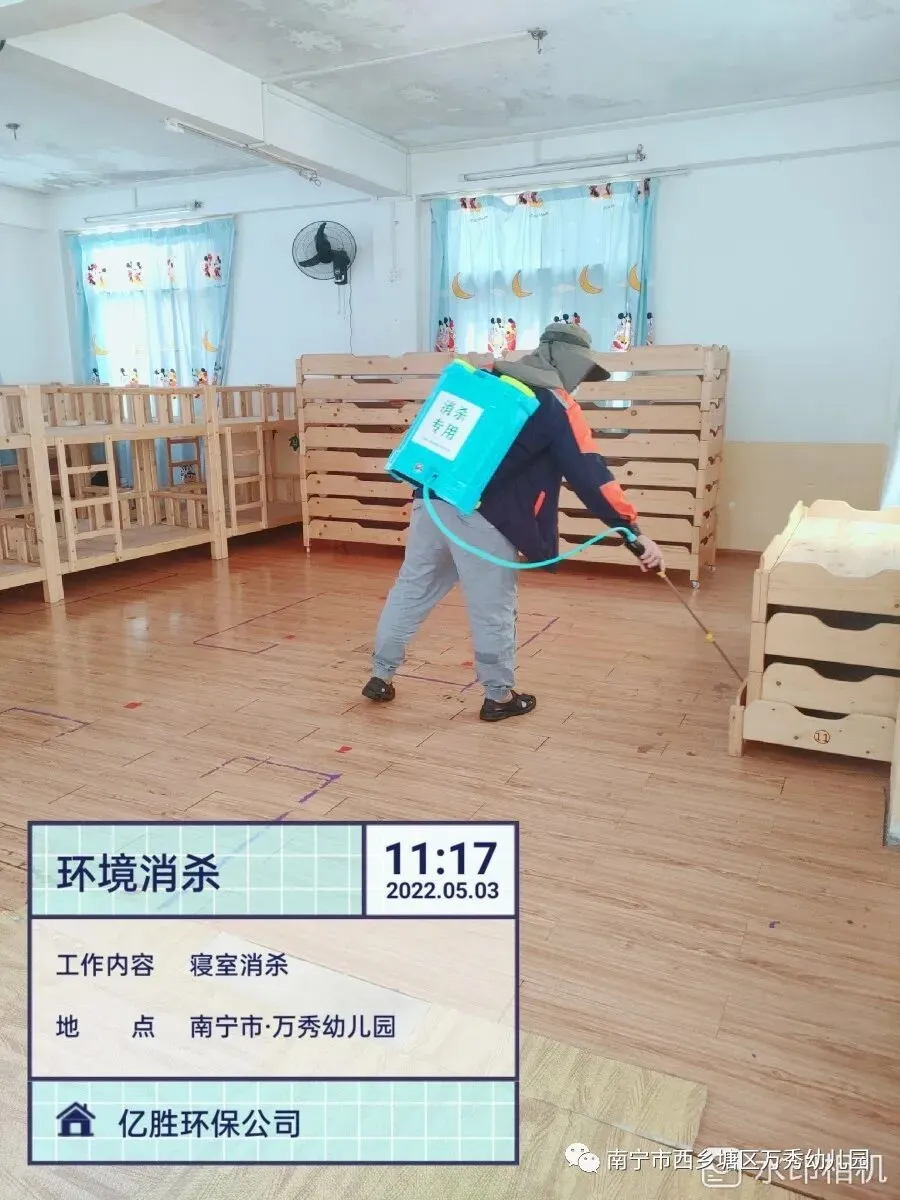 对各班活动室、伙房、绿化带、操场、大型玩具、等公共场所逐一实施消杀,重点对绿化带、室外、洗手间等区域实施灭四害。
