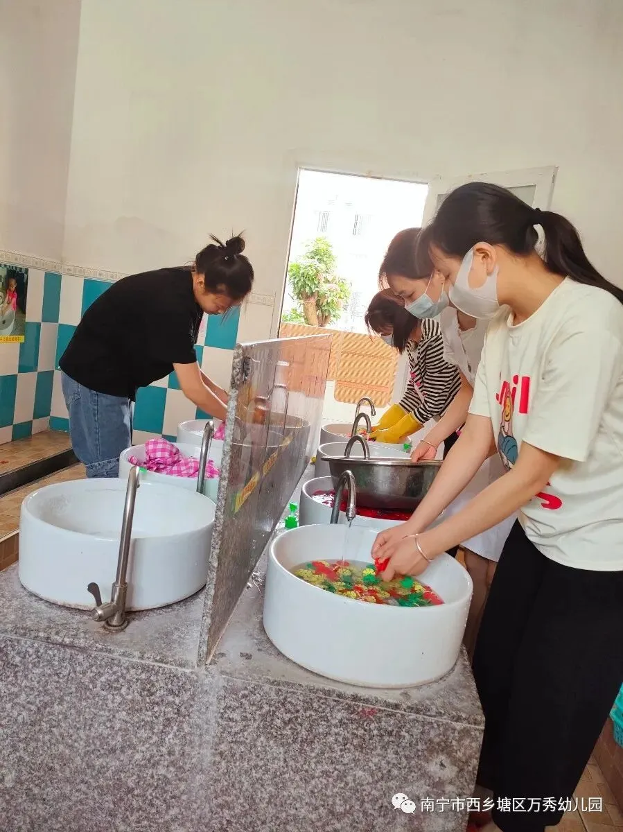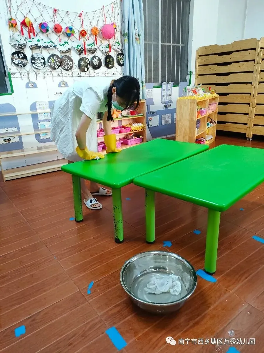 全体教职工严格按照卫生消毒标准规范操作,重点清扫每一个角落,不放过任何一个死角,不留下任何一个盲区,真正做到让孩子开心,让家长放心,努力为孩子们创设温馨舒适的学习生活环境。