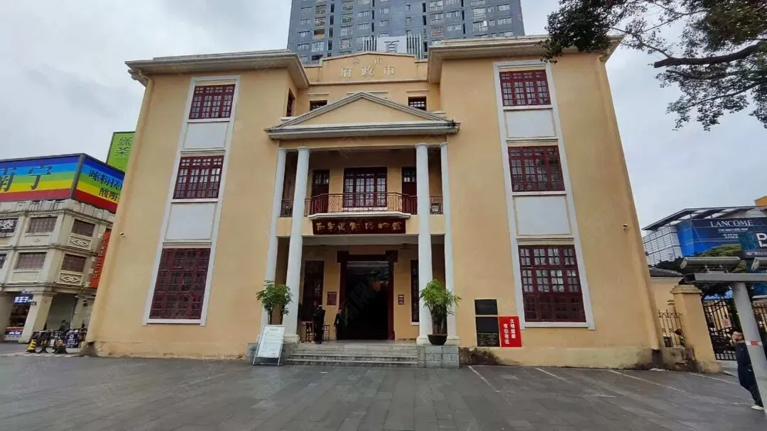 先跟大家说下这栋小楼的位置:在南宁市兴宁区朝阳路 3 号,三街两巷历史文化街区旁。周边是热闹的商铺、来往穿梭的人群,这栋淡黄色小楼夹在现代建筑中间,更显别致。建筑采用的是西式墙身,中式屋顶。立面造型为欧式古典建筑形式,既古朴又有韵味。估计不少人跟我一样,路过很多次也未必会走进去,只觉得它好看、复古,不知道里面竟是一座博物馆。
