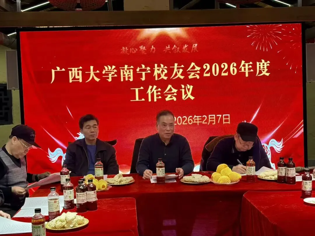 2026年2月7日下午,广西大学南宁校友会2026年度工作会议在岭南鲜坊如期举行。会议由校友会秘书处主持,会长、副会长及秘书处成员、校友代表等三十余人参加。本次会议旨在总结2025年工作成果,安排部署2026年主要工作,并就校友会未来发展进行深入探讨。