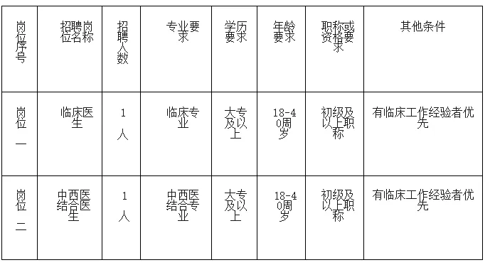 招聘岗位:临床医学、中西医结合