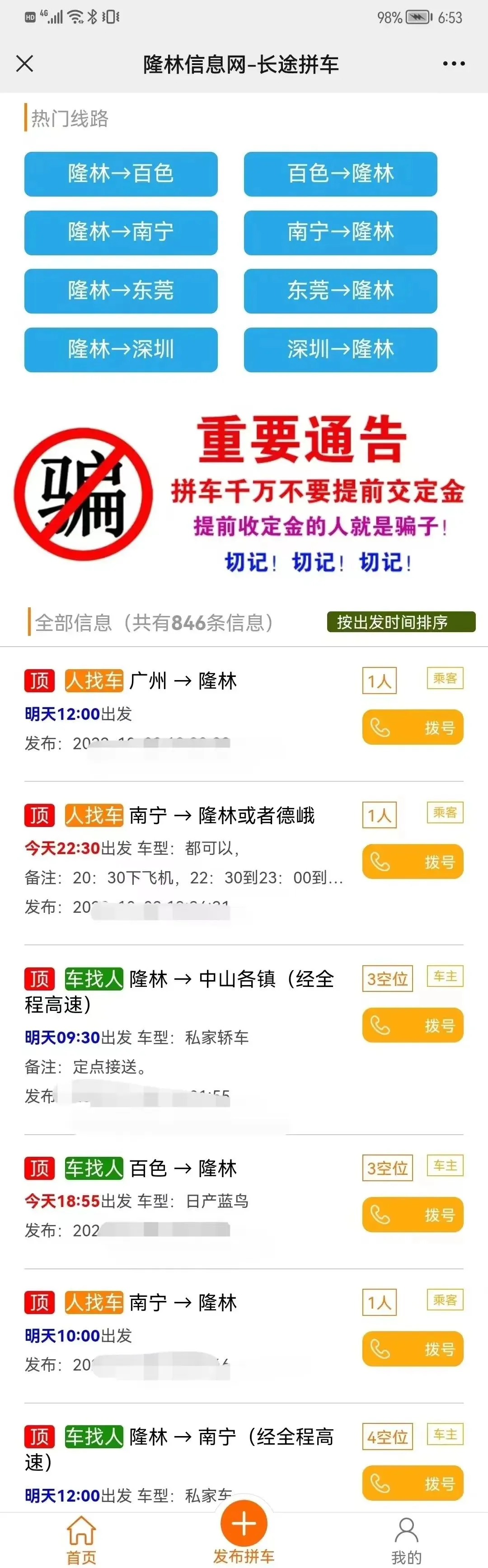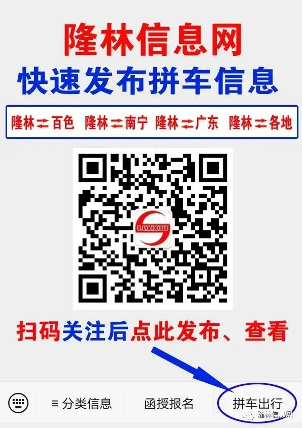 隆林⇋百色 隆林⇋南宁 隆林⇋广东方向,拼车总汇