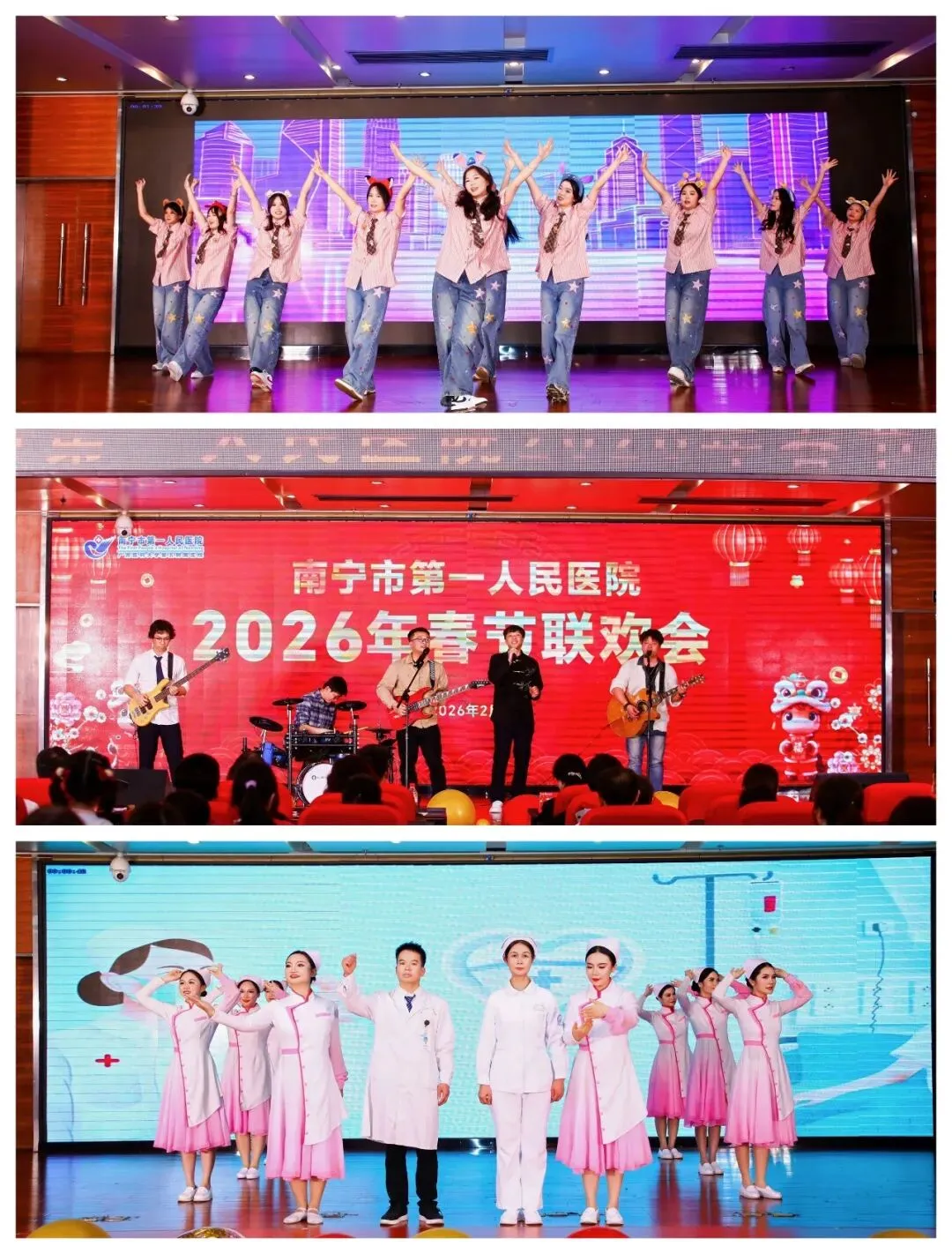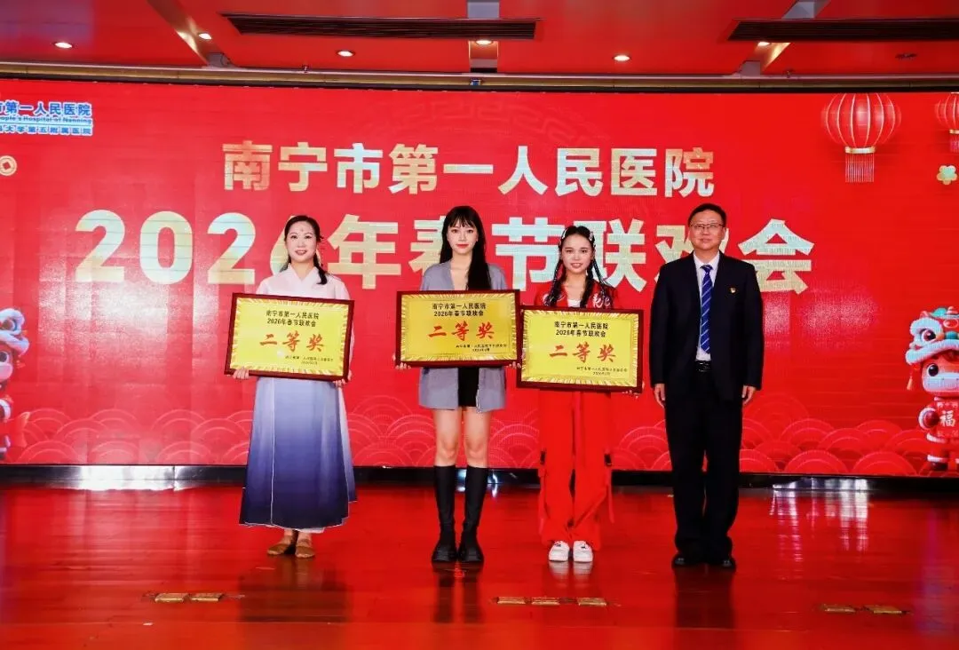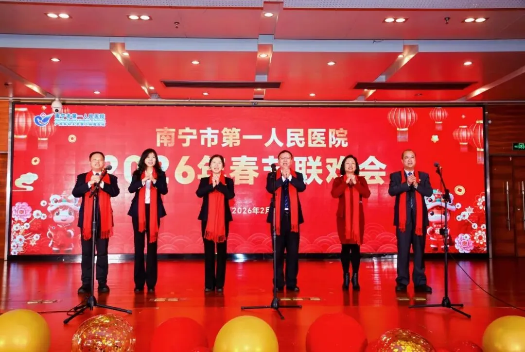 东风送暖,万象更新。我们满怀喜悦与豪情,告别硕果累累的乙巳蛇年,迎来生机勃勃的丙午马年!2月6日,南宁市第一人民医院举行2026年春节联欢会,在这充满希望和活力的2026年伊始,市一人欢聚一堂,共享文艺盛宴,为2026年的精彩篇章谱写激昂序曲。医院党委书记蒋武、院长阳世雄带领医院党政领导班子向坚守岗位的医护人员及参与活动的干部职工致以诚挚的问候和美好的新春祝福。