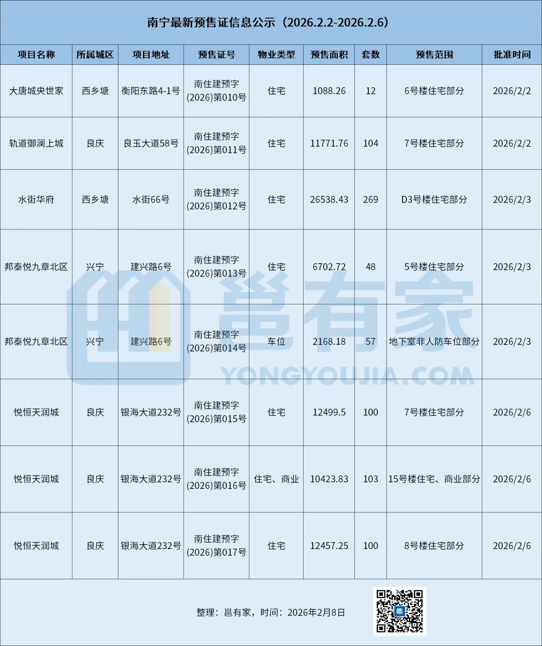 批准8本预售证,涉及住宅、商业、车位,具体请看下表↓↓