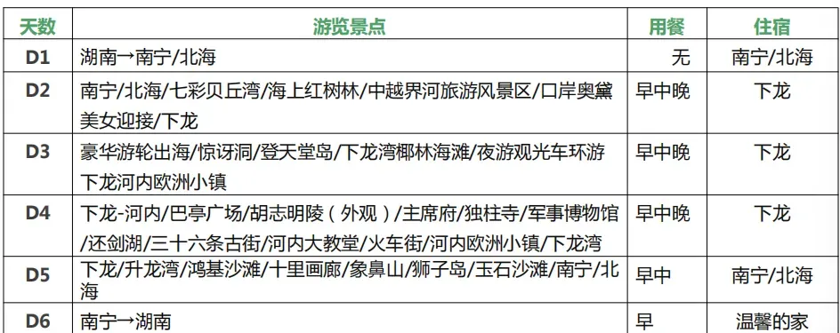 2、旅游用车:国内段空调旅游车和越南段空调旅游车(按人数安排车,座位是先到先坐,保证每人一正座);人数少的情况下可能出现师兼导,敬请谅解)