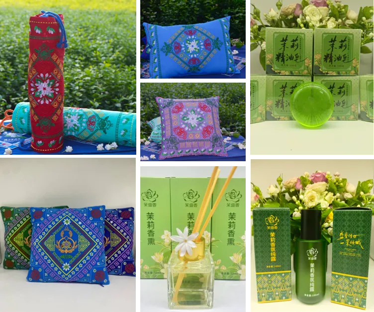 以茉莉为核心载体融合民族工艺,香品(香枕、香包)饰壮锦葫芦纹(喻福禄)、喜纹,缀茉莉含富贵之寓,内填横州高窨茉莉花茶芯,清香安神且祛味,寄祥瑞随行之愿。护肤线含精油皂(绵密洁肤)、纯露头道蒸馏保湿、香氛精油嫩肤抗衰,成三位一体养护模式。香氛以茉莉为前调,层次丰富可调节扩香,是诗意生活的植萃良品。