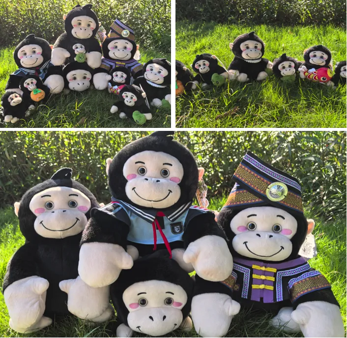 “山米IP系列”毛绒玩具以南宁市动物园黑猩猩山米为原型,特色造型吸睛,有穿校服和壮服的山米;实用萌物满足需求,双肩包可装手机等,大号趴趴玩偶适合抱睡,趴趴站肩玩偶增添穿搭亮点,文曲猩等挂件装饰背包,手机背夹便于携带手机;互动款有趣,拍手互动玩具能播放歌曲,丢草拉球挂件复刻名场面。