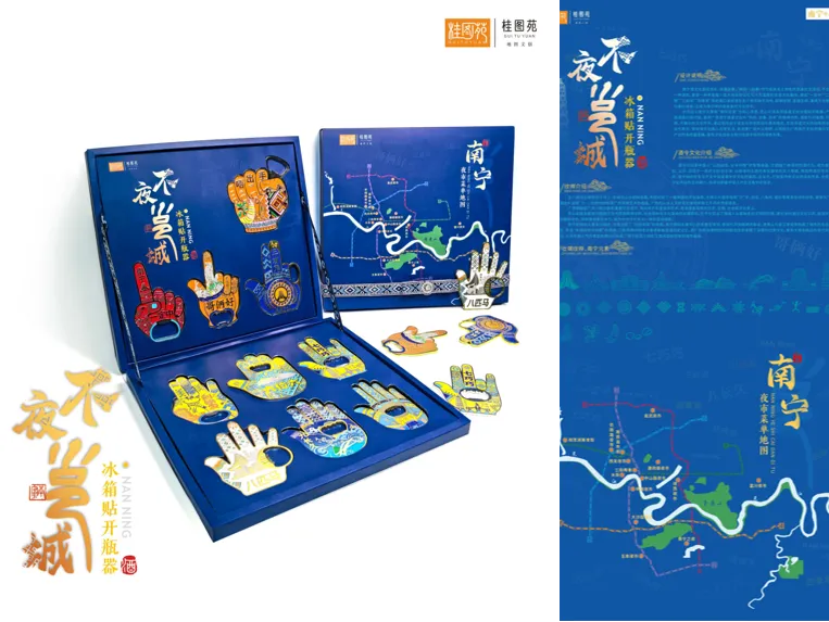 本作品以南宁元素和“猜码言语”为核心灵感,匠心打造系列金属文创冰箱贴开瓶器。产品既具备实用功能,更将广西南宁酒桌文化中“热闹、友善、吉祥”的精神内核,凝练为可触摸、可携带、可展示的文化符号。