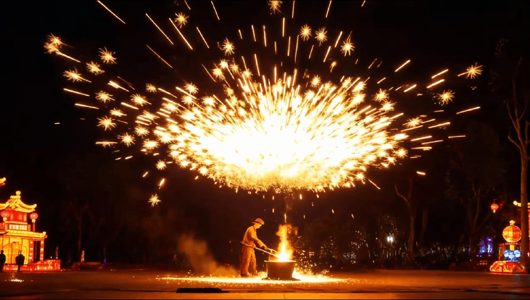 此外,国家级非遗项目打铁花亮相现场,搭配飞天舞狮、飞天火壶、火艺秀等水上表演,呈现精彩火光盛宴。音乐大草坪水上舞台更是热闹非凡,精彩歌舞表演不间断呈现,让市民游客在多元演艺中欢度新春。
