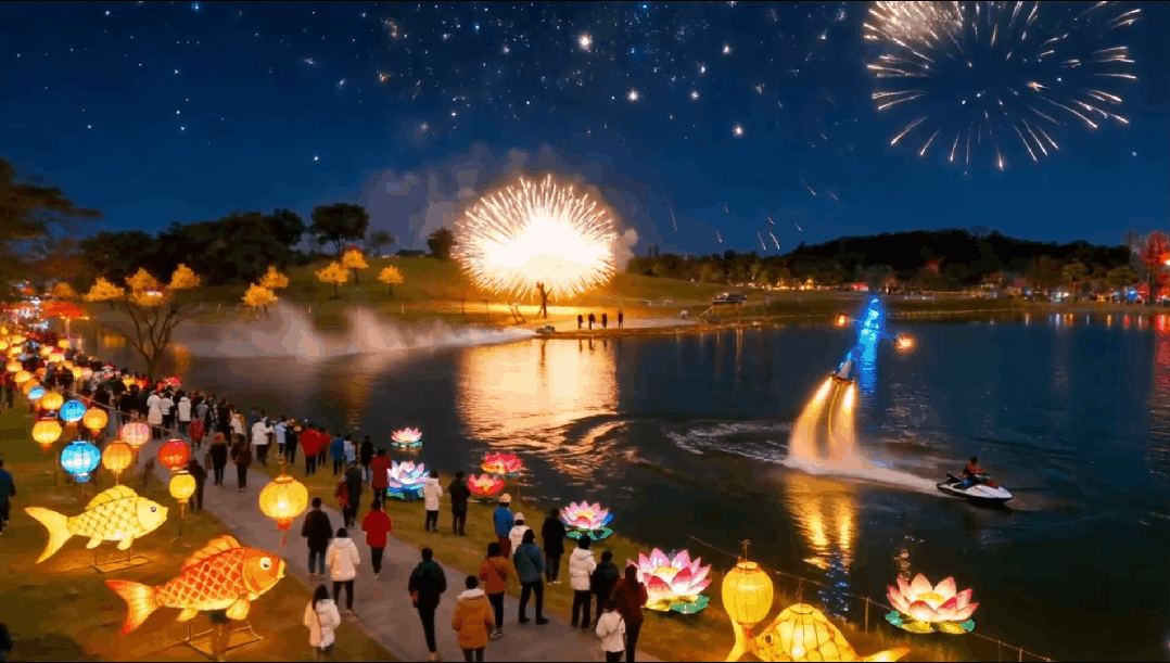 大年初二至初六,清泉湖畔每晚压轴上演六场新春庙会主题烟花秀,与挚爱共赏璀璨盛景,共许新年心愿。