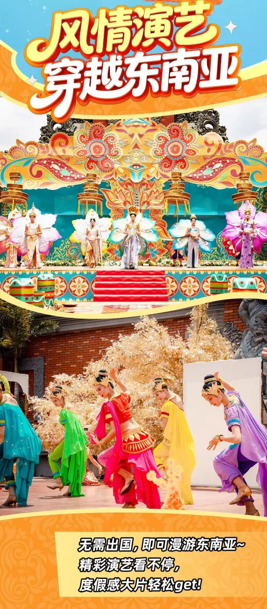 园区40+项目,为全家提供丰富的游玩选择!带孩子乘坐寓意美好的旋转木马,打卡马年第一张全家福;挑战刺激的《丛林飞龙》,体验木质过山车的极速快感。《伴你飞翔》带您凌空俯瞰东盟十国壮美风光,大型舞台《千岛之歌》则用绚烂舞美讲述异国传奇。每一次体验,都是文化与乐趣的完美结合。