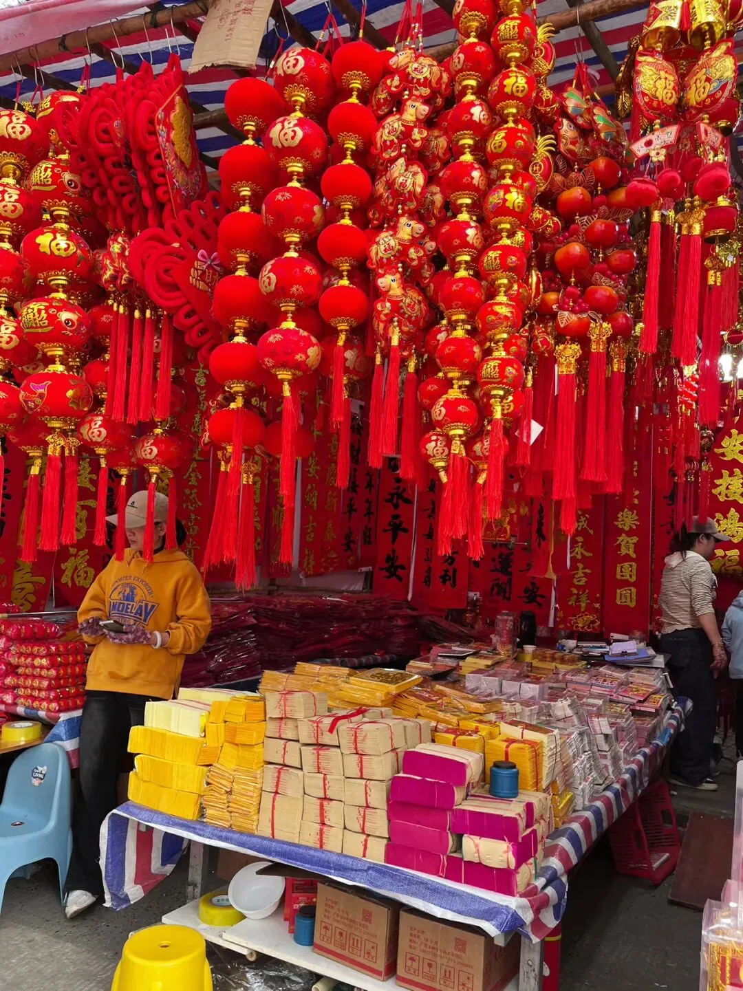 顺便逛了一下交易市场,临近过年,市中心人非常多,附近很多开始卖年货了,各种过年的糖果、干货,还有很多的春联、红包、灯笼等……
