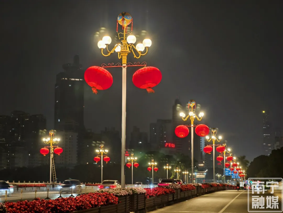 一盏盏灯笼点亮城市街巷,一个个中国结编织新春愿景。随着春节灯光氛围营造工作的推进,邕城正以年味醇厚、烟火浓郁、暖意融融的崭新姿态,迎接新春佳节的到来。