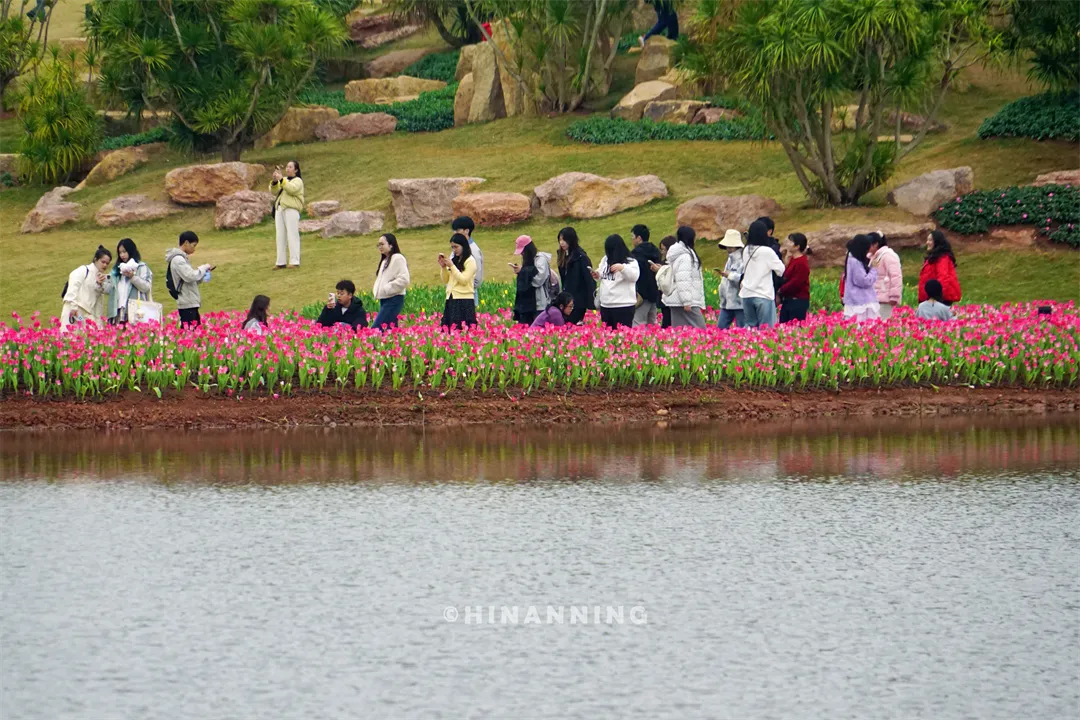 嗨仔昨天帮大家打探过了,这次山水郁金香观赏文化活动从2月11日一直持续到3月15日,活动现场依托丘石花园那错落有致的地形和雅致石景,打造出独具特色的山水景观。