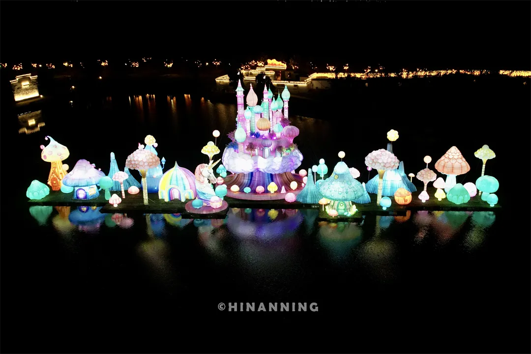 “梦幻城堡”灯组,蘑菇屋、独角兽,满满的奇幻童话氛围,感觉走进了童话世界。