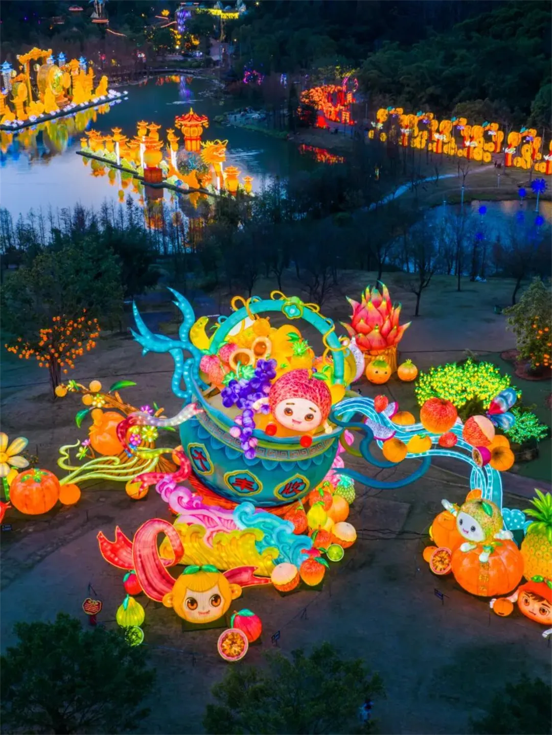 灯会规模直接升级到约1430亩,超70组流光溢彩的灯组,那叫一个“高、大、新、奇、美”,汇聚“形、色、声、光、动”。
