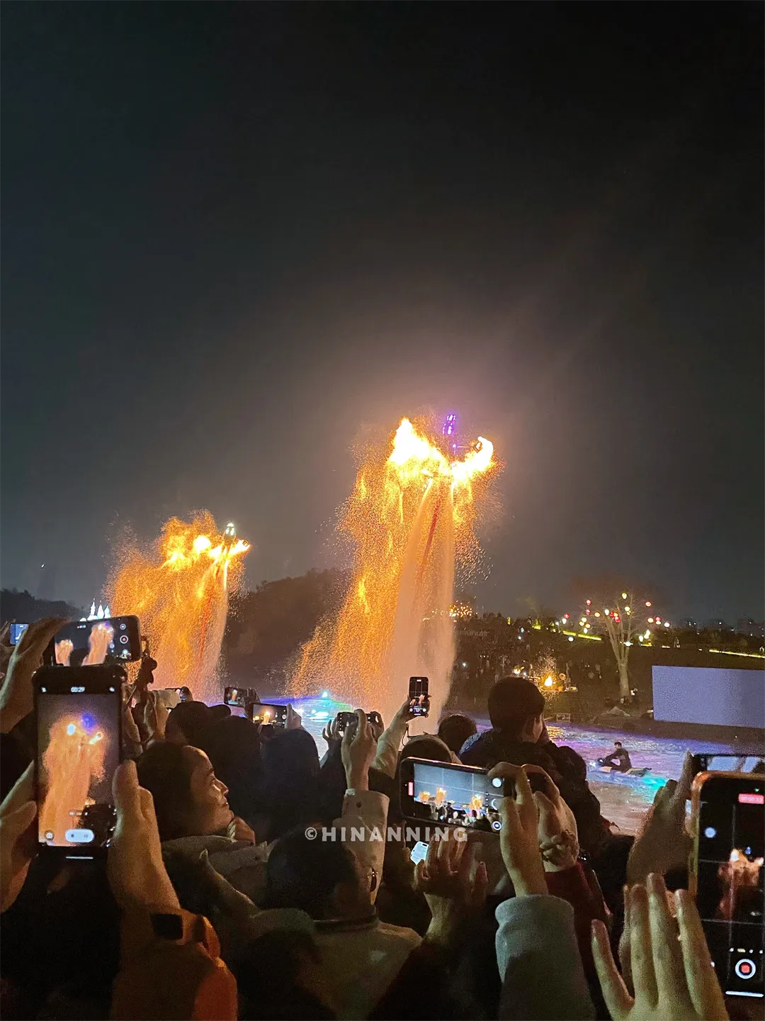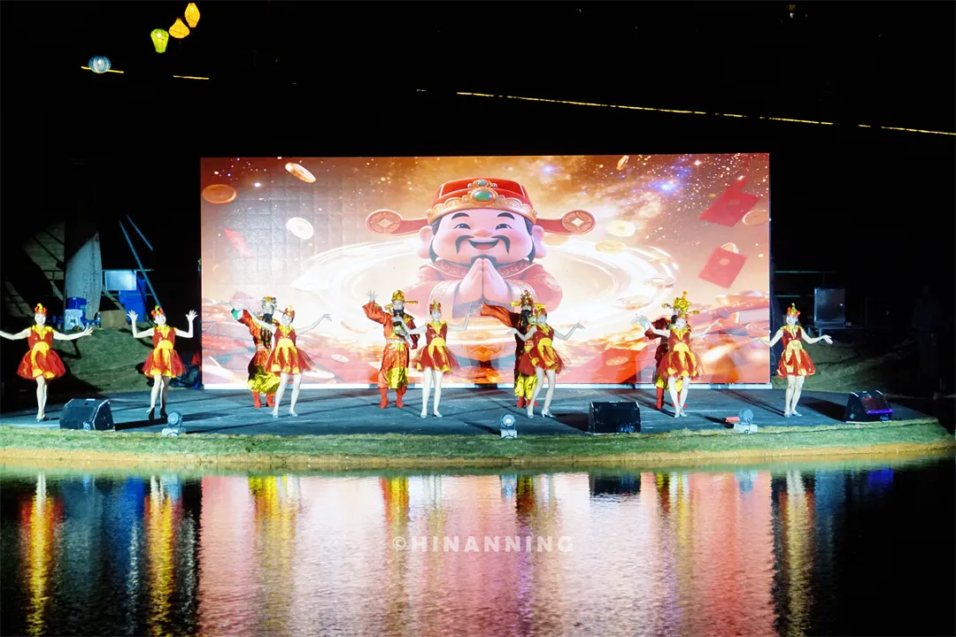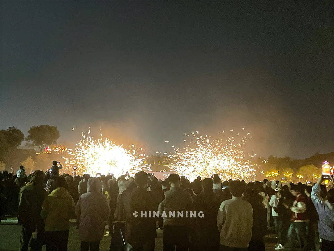 国家级非遗项目打铁花也来凑热闹啦,搭配飞天舞狮、飞天火壶、火艺秀这些水上表演,那火光盛宴,简直绝了!音乐大草坪水上舞台更是热闹得不行,精彩歌舞表演一场接一场,感觉眼睛都不够用啦。
