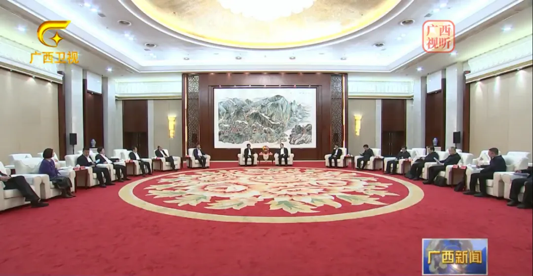 自治区副主席曹志强、自治区人民政府秘书长钟得志、自治区人民政府副秘书长梁磊、桂林市市长卢新华、自治区文化和旅游厅厅长欧余军、自治区园区办主任邹展业、自治区商务厅副厅长陈彦武、广西文化产业集团董事长郑娟参加会见。