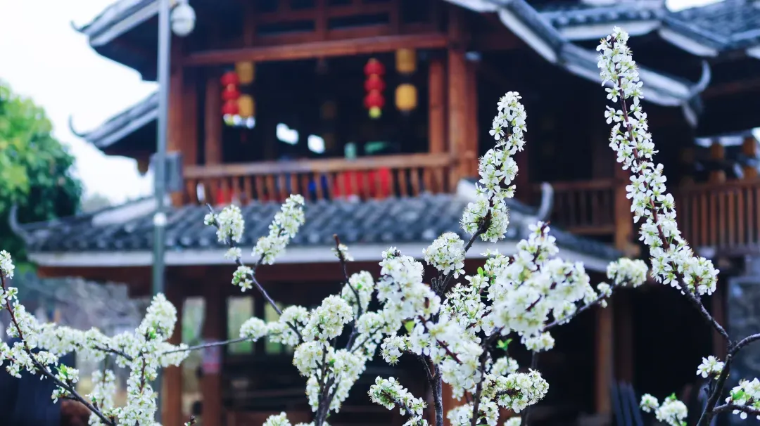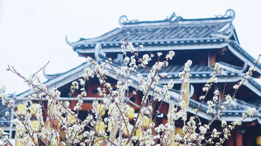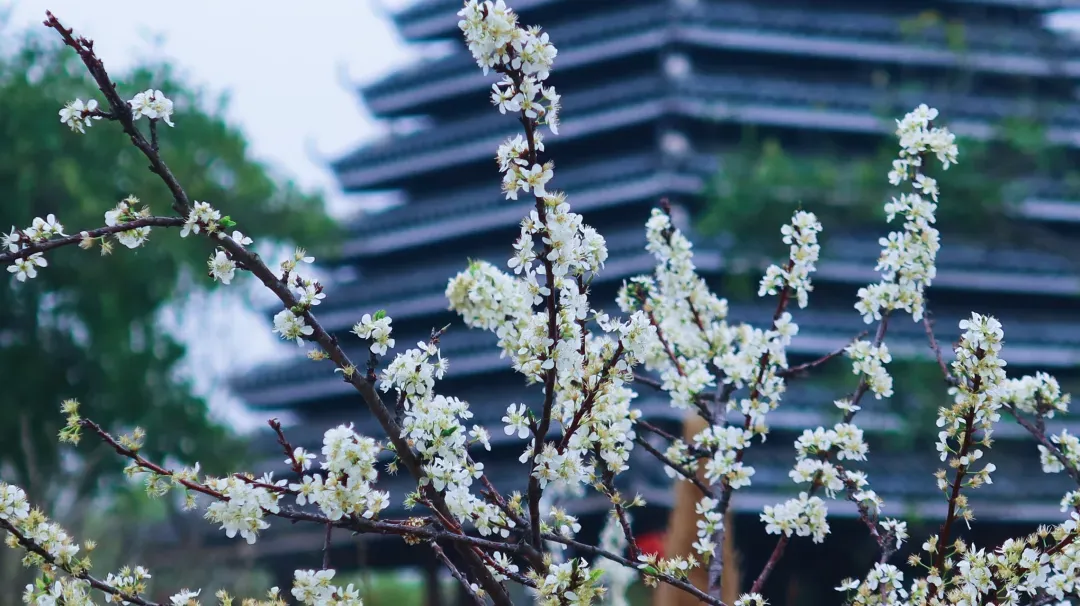 风雨桥、鼓楼旁,簇簇李花如雪绽放,古村古韵配春日繁花,拍照出片率100%!