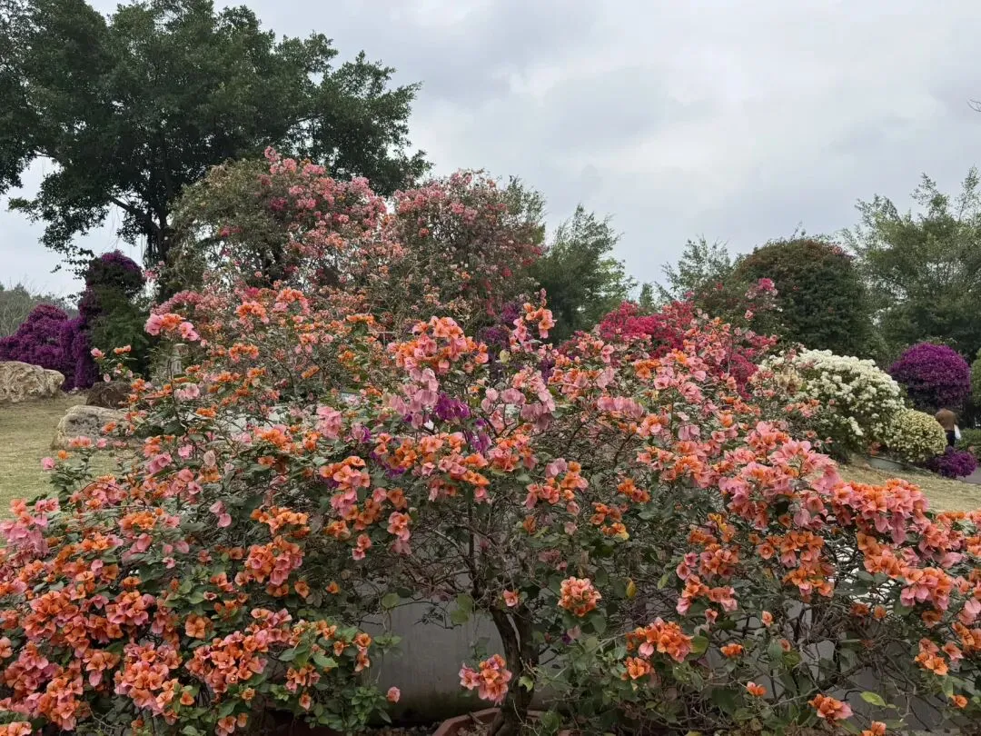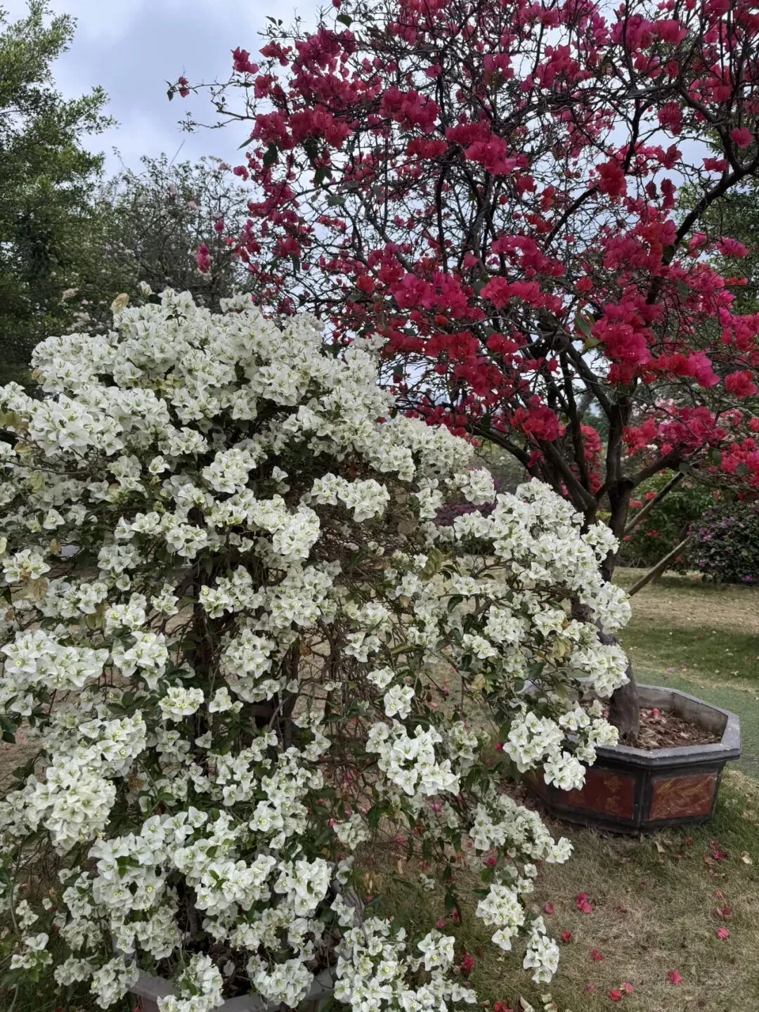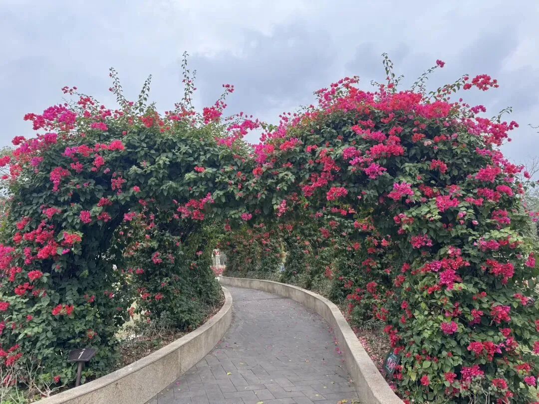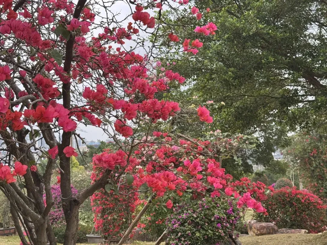 青秀山是南宁的标志性必看景点,和长沙的岳麓山一样。这是我们今天打卡点。山底下是三角梅花展,各类品种的三角梅盛开,煞是好看。三角梅是我很喜欢的花之一,我喜欢那一片海一般的绚烂。我家就有一颗很大的紫色三角梅,从春来到冬,除了最冷的那两个月,我感觉在长沙,它的花季贯穿了四季将近十个月。