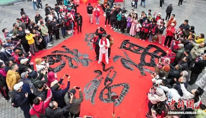 2月8日,“瑞马迎新 百福同书——2026年梧州市新春墨韵传福雅集活动”在梧州市骑楼城举办。活动创新打造3米×135米的巨型福字长卷,邀请近三百户家庭执笔同书,将千年古城的文化底蕴与新春民俗相融。(中新网)【详情】