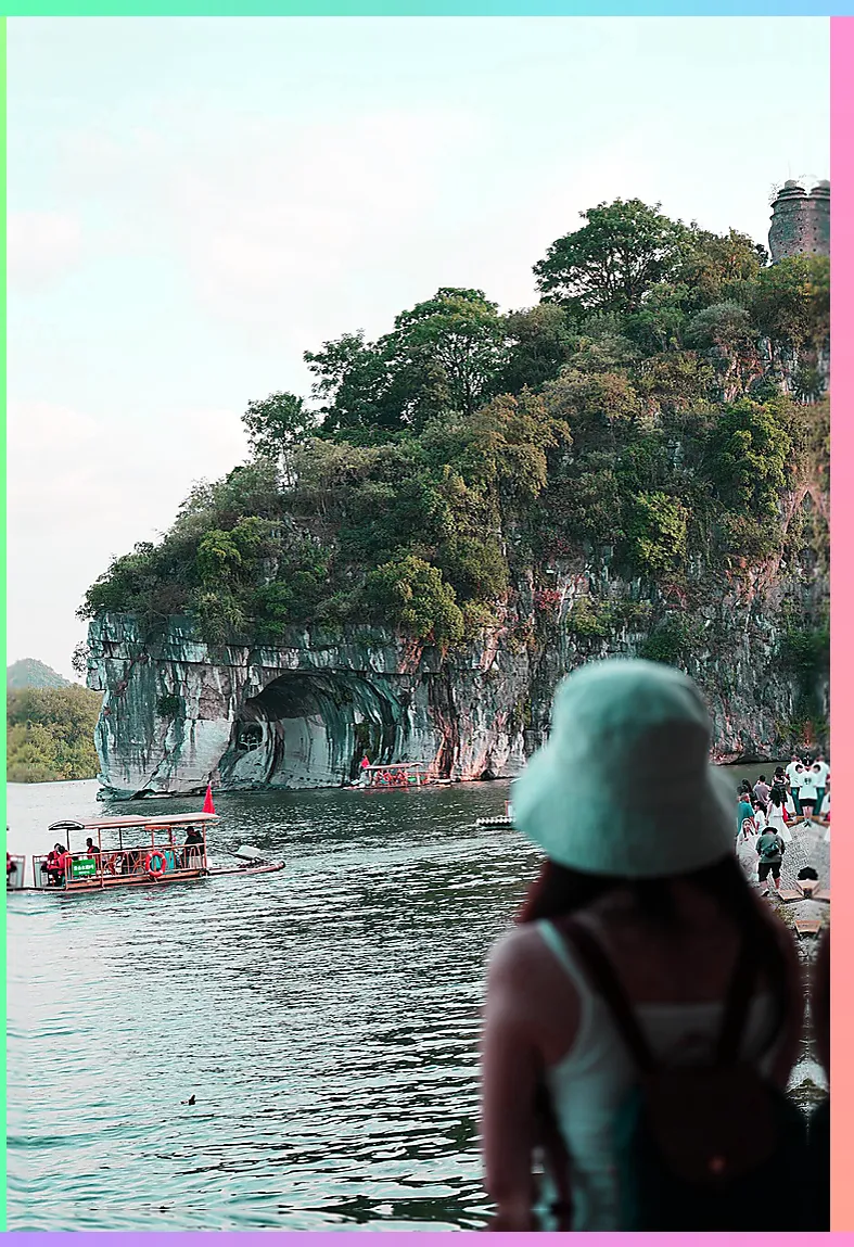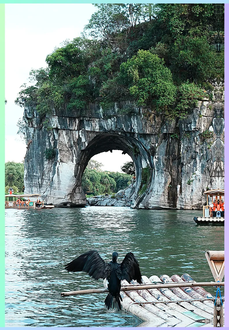 象鼻山现在免费开放了(需预约),人肯定不少。别大中午去,晒得头皮发麻,光线也硬。建议清晨或者傍晚去,光线柔和,水面有倒影,运气好还能看见渔民赶着鸬鹚。
