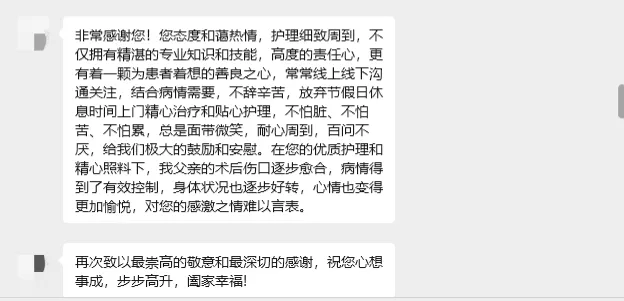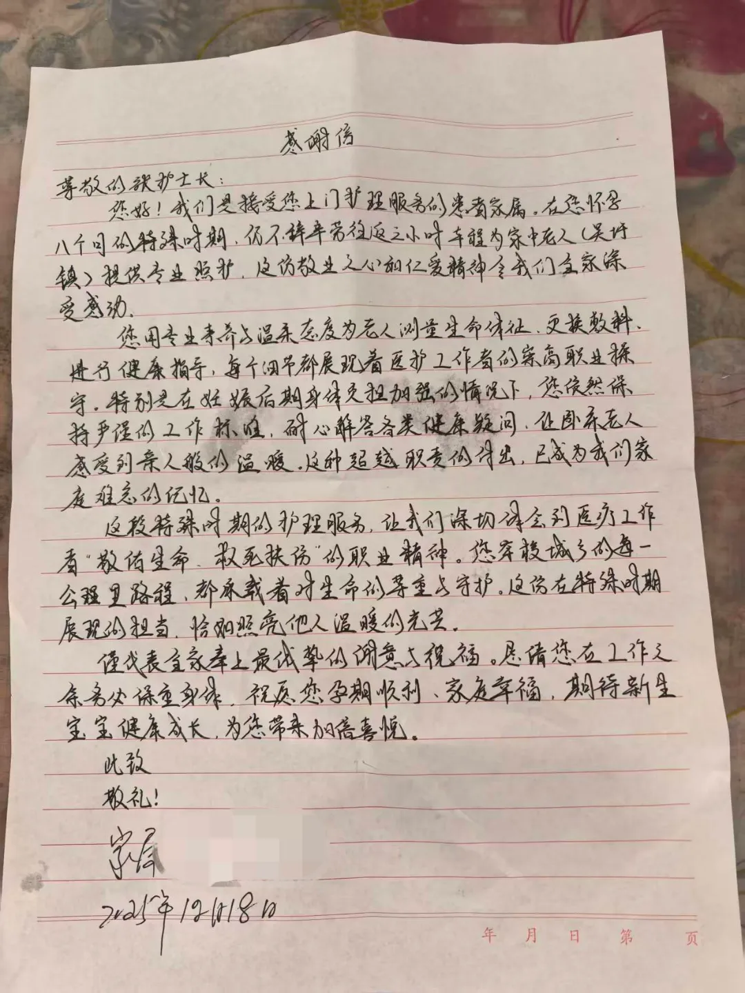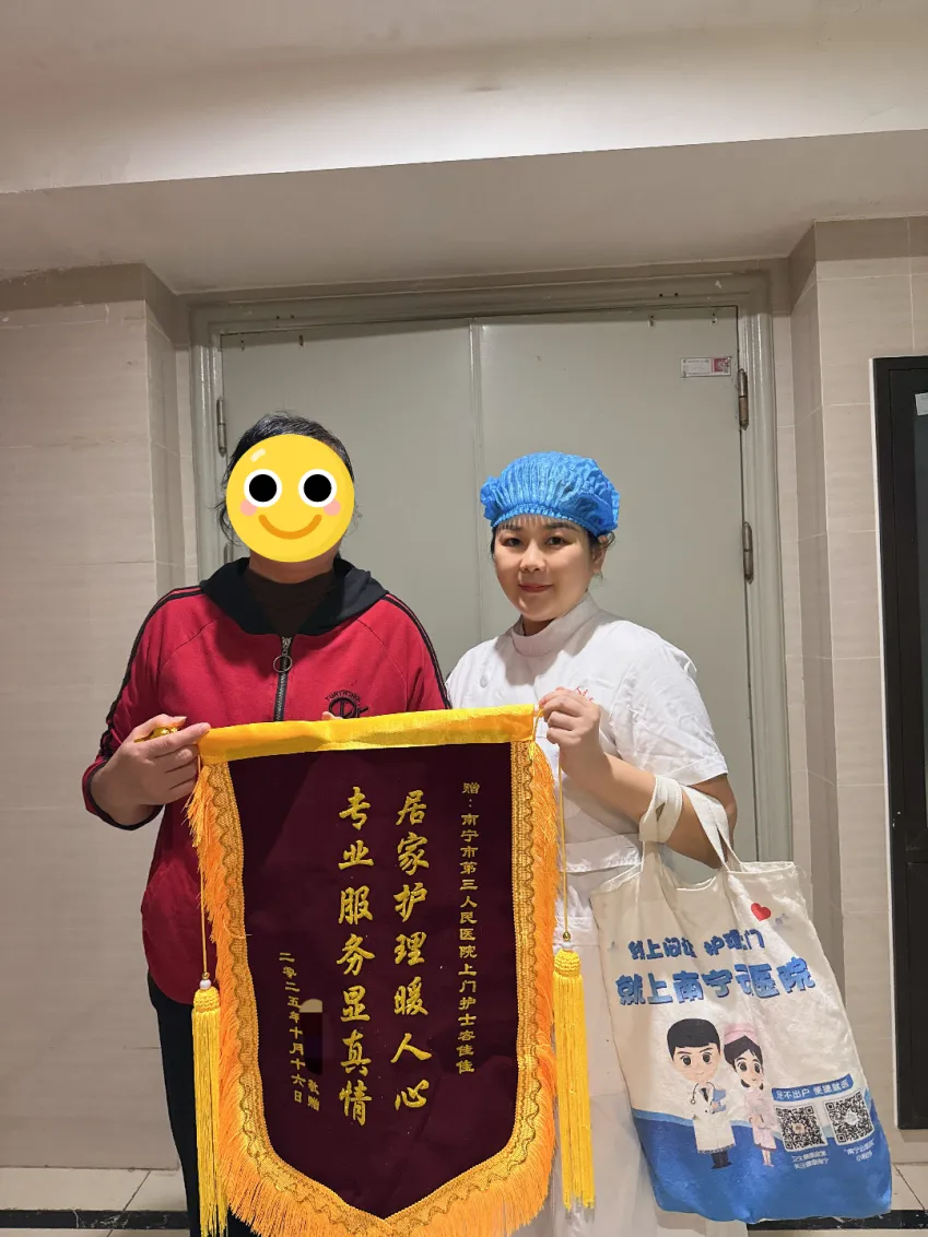“感谢南宁云医院平台,让我们足不出户就能享受到专业护理。更感谢韦明弟护士,总是在我们需要的时候出现,像家人一样可靠。”家属的感激之情,最终化作一封字迹工整的手写感谢信,郑重地递到了韦明弟手中。