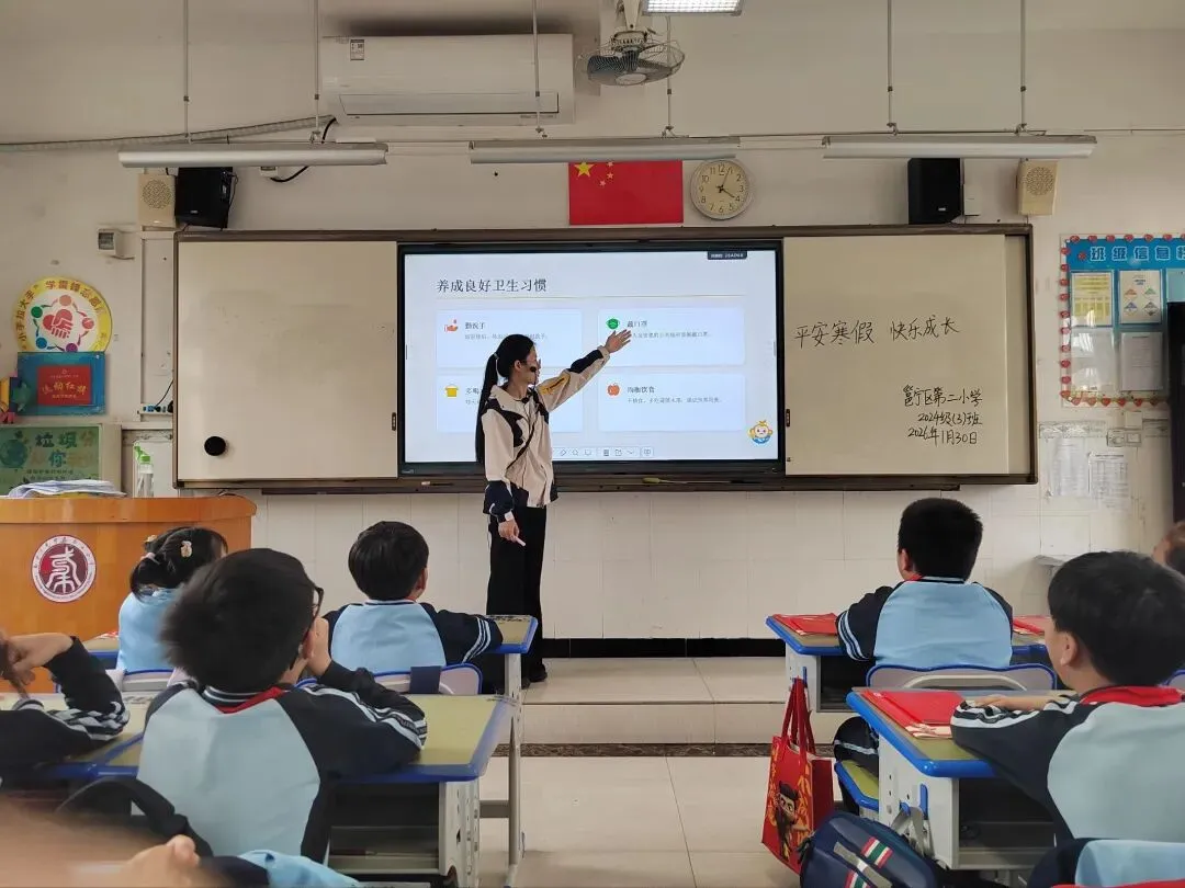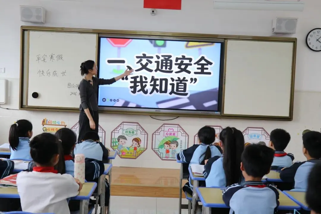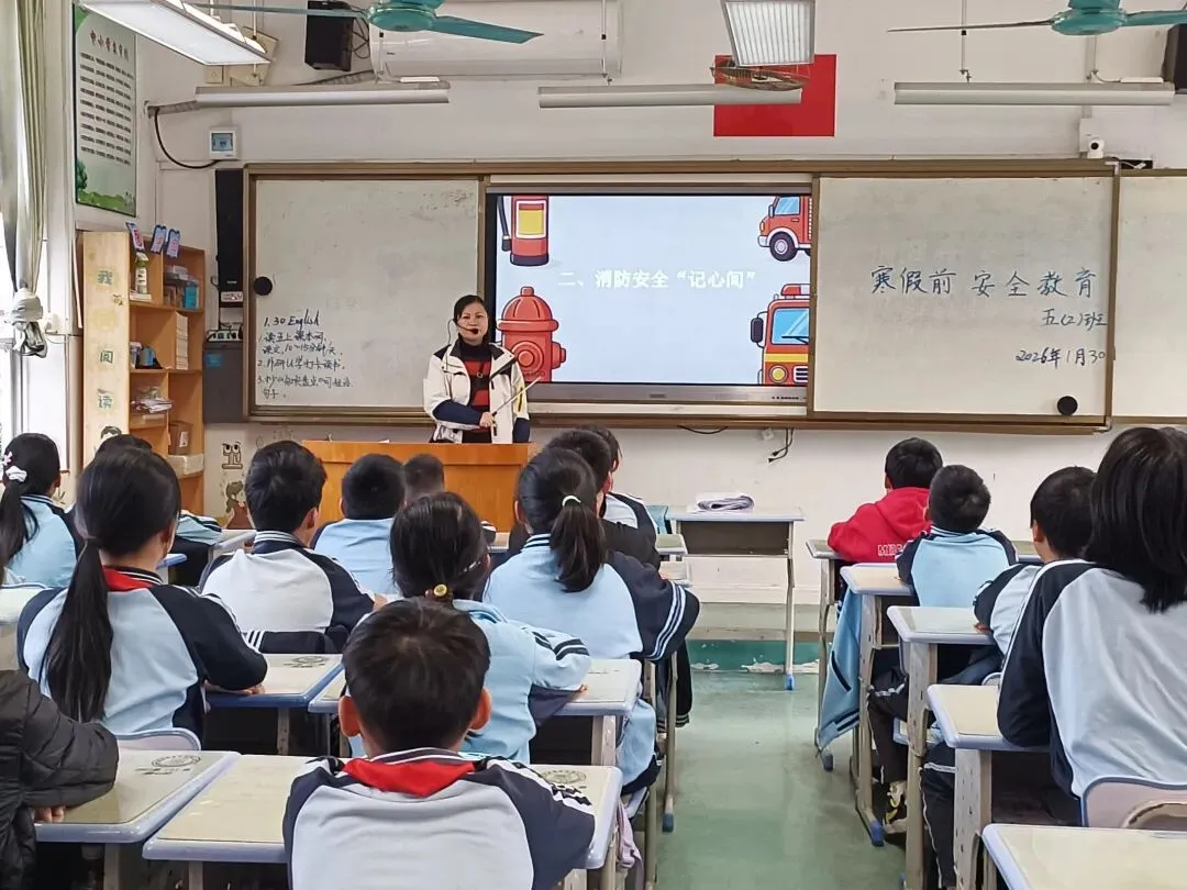 各班开展学期复盘,师生畅谈成长收获、温情互动。班主任聚焦交通、消防、反诈等重点,宣讲安全知识,筑牢假期安全防线。