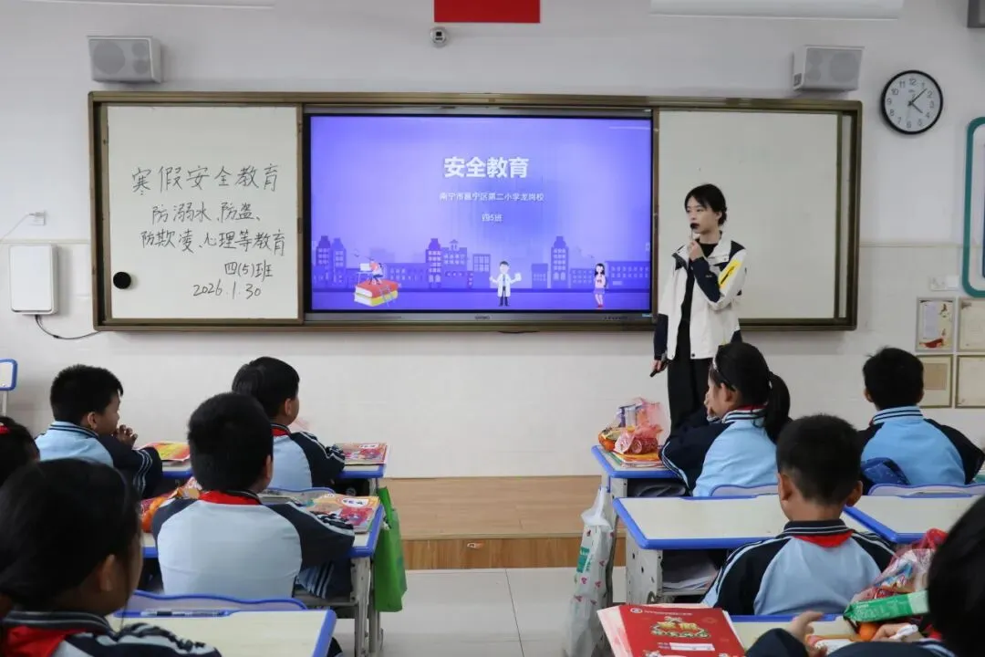 为回顾学期成果、强化安全意识、指导寒假规划,1月30日下午,南宁市邕宁区第二小学举行“凝心聚力启新程 平安快乐度寒假”主题散学典礼,蒲津、龙岗两校区师生齐聚,为本学期圆满收官。