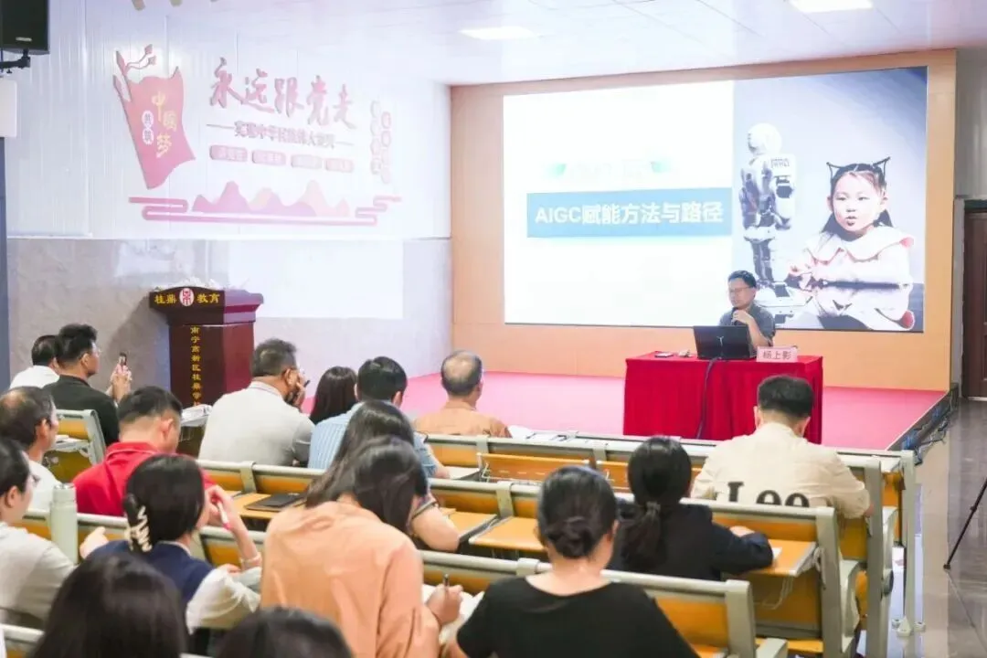 通过“AI赋能教学”系列深度培训,邀请南宁师范大学杨上影教授等专家,点燃教师探索智慧教育的热情。从普及认知到深度应用,一批骨干教师如廖凯、闫淑丽等,成为校内“AI+教育”的领军种子。