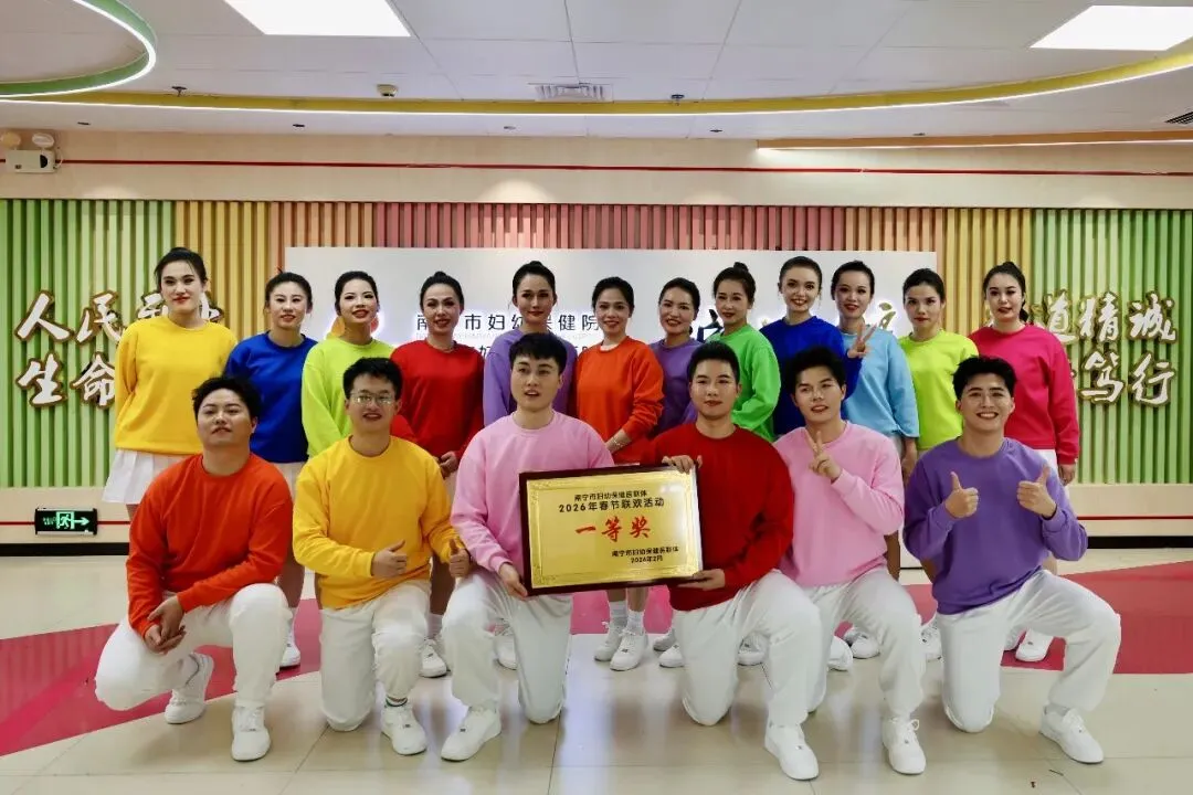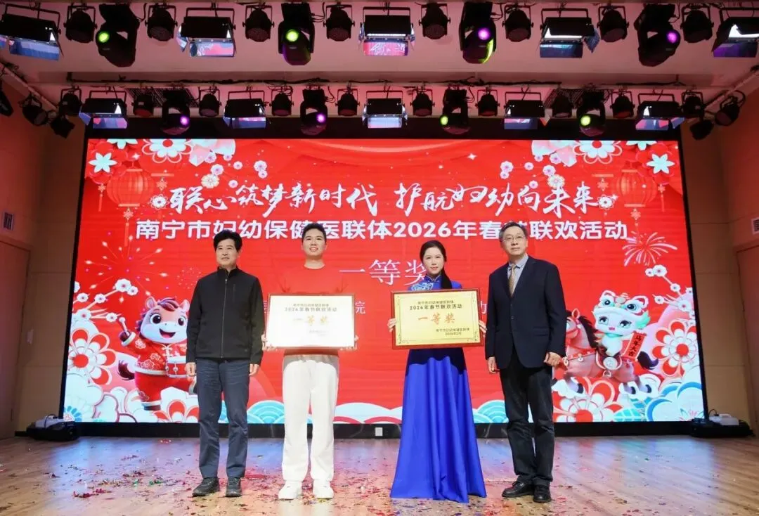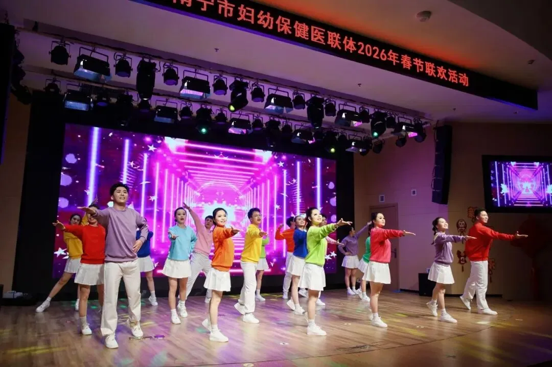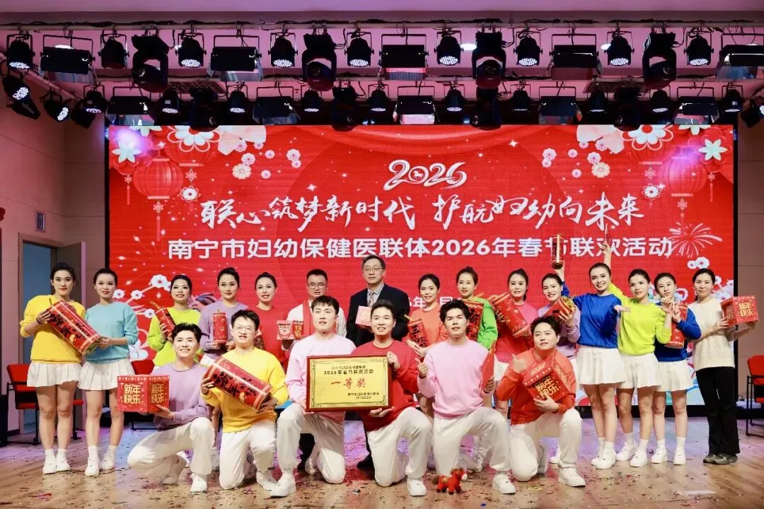 新春启新章,炫舞绽芳华。在南宁市妇幼保健医联体2026年新春联欢活动的舞台上,我院精心选送的舞蹈《医起跳舞吧》惊艳亮相,大放异彩,舞者们以卓越的表演征服全场,以全场最高分一举斩获“一等奖”,为医院新的一年奏响了激昂的奋进序曲,开启了新年勇创佳绩的良好开端!