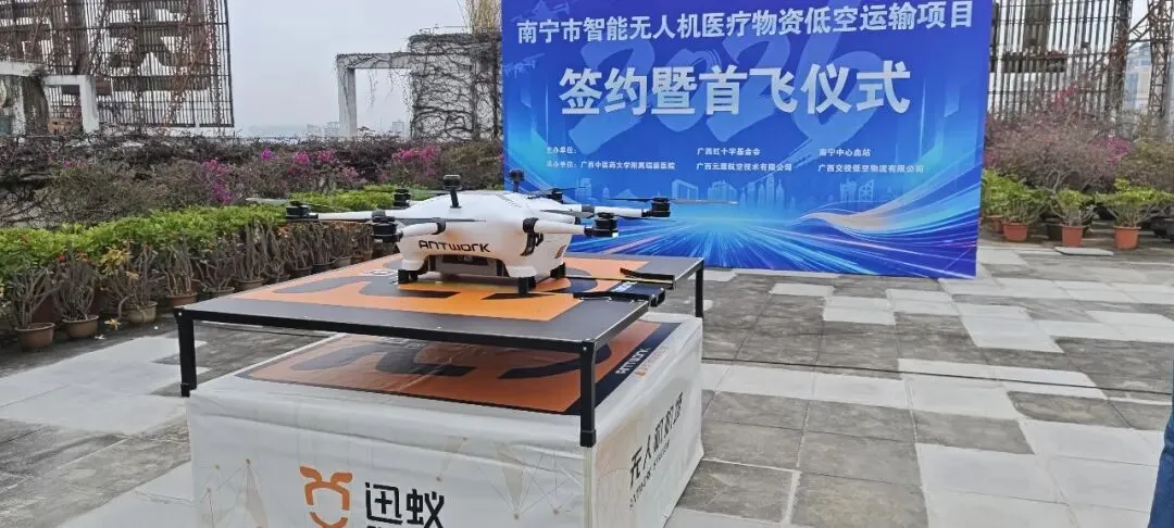 1月30日,随着指令一声下达,元鹰航空采用的迅蚁RA3无人机搭载血液样本专用恒温箱,从南宁中心血站缓缓升空,穿越城市空域,仅用6分钟便精准降落在广西中医药大学附属瑞康医院无人机起降站。这一瞬间,标志着南宁市首条血液低空运输配送航线正式投入试运行,更意味着在元鹰航空的技术支撑下,南宁医疗应急配送正式迈入“低空时代”,空中生命通道就此打通!