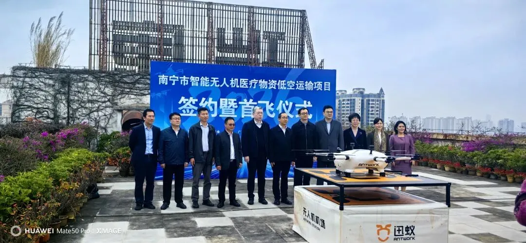 技术赋能公益,合作共筑防线。在当天的签约暨首飞仪式上,元鹰航空与广西红十字基金会、广西中医药大学附属瑞康医院正式签署合作协议,三方携手共建智能无人机医疗物资低空运输平台,共同构建“空地联动、极速响应”的应急救援机制。