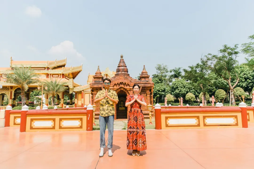 在东盟各国的建筑前各来一张牵手照