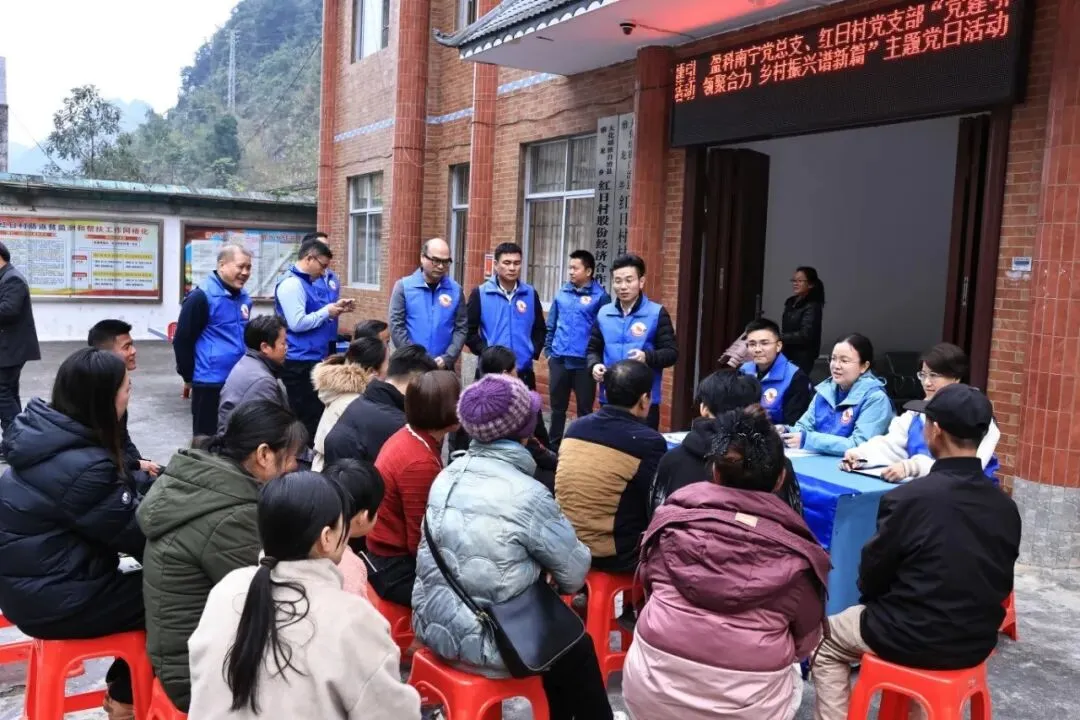 在红日村委设立的法律咨询点前,律师们围绕土地流转、薪资追讨等村民常遇的法律问题,提供一对一专业咨询,切实帮助提升群众法治意识。同时,广西残疾人福利基金会副理事长韦锦程在驻村书记的带领下走访看望红日村残疾群众,并协调解决轮椅等物资需求。