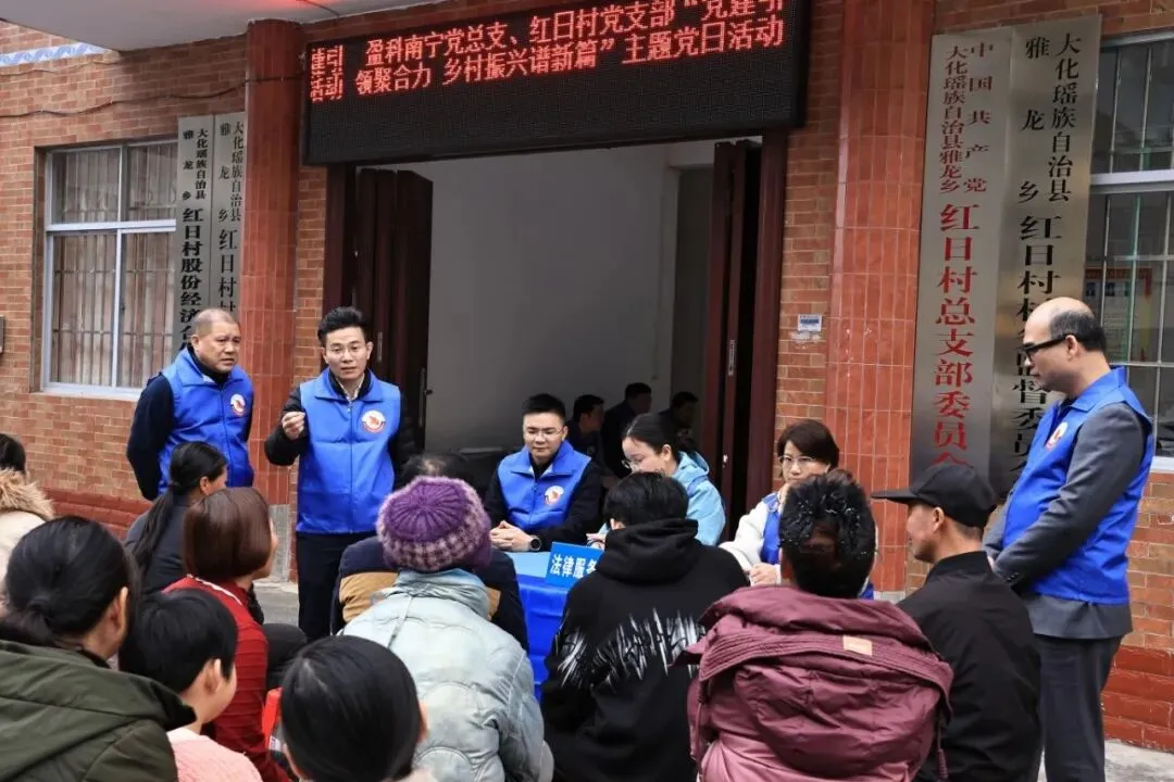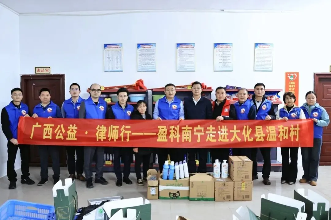为积极响应自治区司法厅、广西律师协会“广西公益 · 律师行”助力乡村振兴活动号召,践行律师社会责任,2月4日,盈科南宁一行12人,联合广西残疾人福利基金会党支部、广西泞远商业管理集团有限公司,共同前往大化瑶族自治县红日村与温和村开展公益活动。大化县副县长于平全程参加相关活动。通过实地走访、普法宣传与物资捐赠相结合的形式,为两村带去了法律关怀与务实支持。