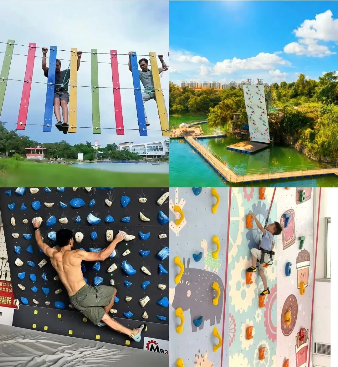林地运动:在园区林地设置户外越野活动区,设置280m丛林穿越探险线路、深水抱石Deep Water Solo等运动项目。室内趣味攀岩墙+室外深水抱石人工岩壁,均已获得(攀岩)高危证。