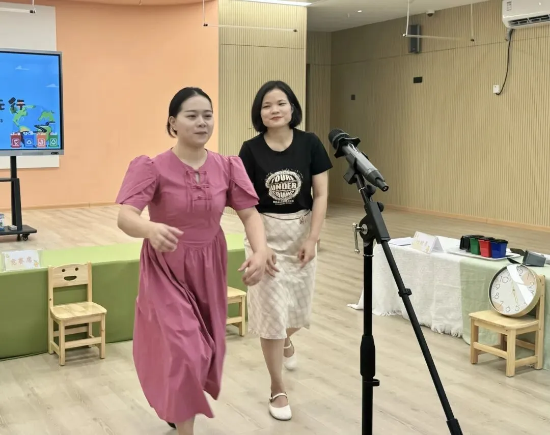 保育老师们上演了一场速度与激情的比拼,她们在激烈而又愉快的氛围中学习到垃圾的正确分类方法。
