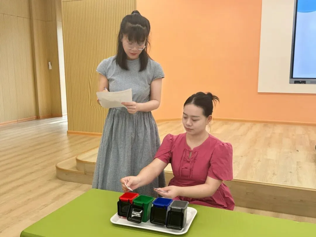 记分员们认真对本次理论测试进行阅卷和计分,评委们对本次比赛予以点评,对各位保育老师在展示过程中存在亮点给予肯定。