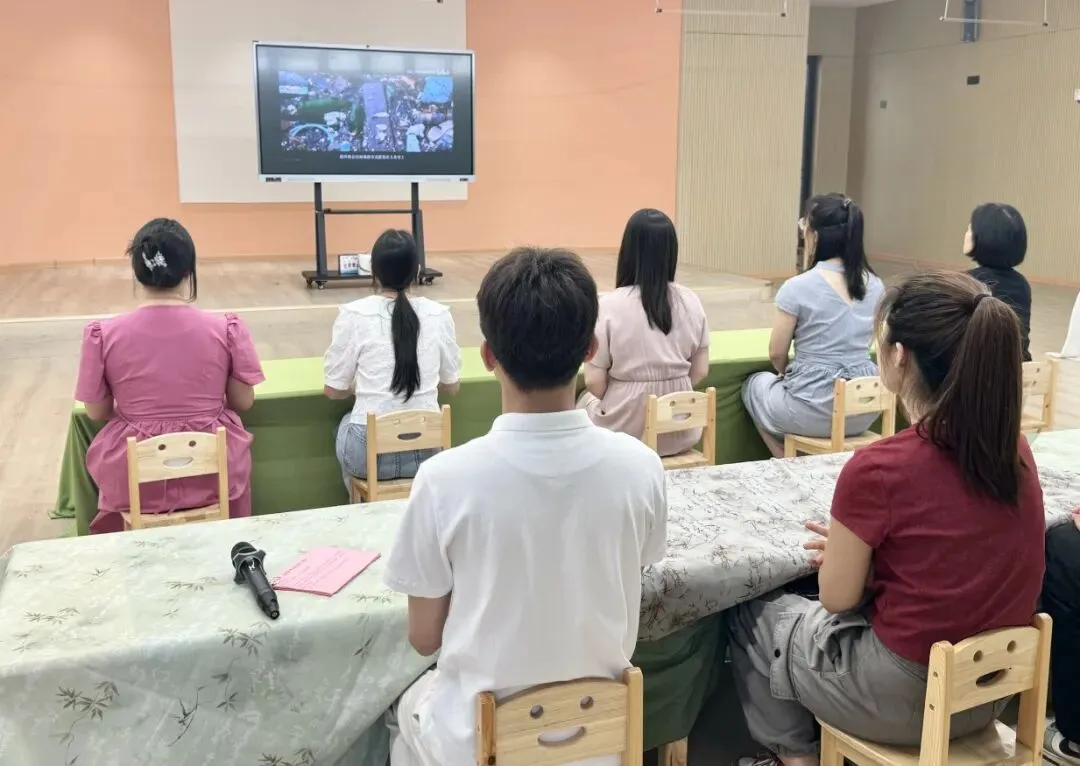 全体教师观看宣传片,宣传片生动有趣地讲解了垃圾分类的方式以及分类后的处理方法,并号召大家积极投身到垃圾分类的行列中。