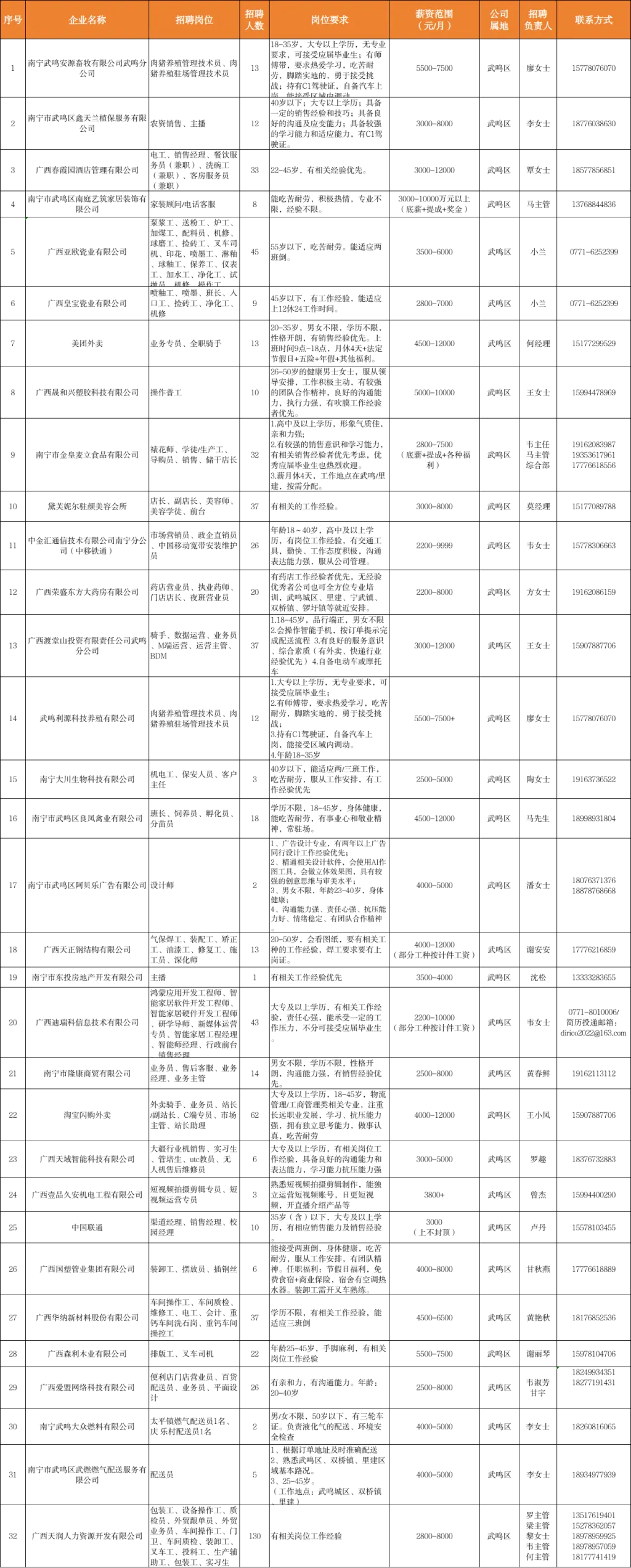 地址:武鸣区人力资源市场(零工市场)(新城路49号人社局一楼)。