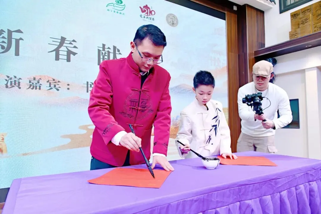 活动期间,各类雅致节目穿插其间、亮点纷呈。书法大师现场挥毫写福、赠予嘉宾,墨香与茶香交融;小朋友相声灵动俏皮,琴瑟表演婉转悠扬,古风走秀式新品发布会雅致惊艳。活动紧扣总主题,设置线上连线环节,与全国各地分会场实时联动,四海茶人云端共品佳茗、共话茶文化传承。