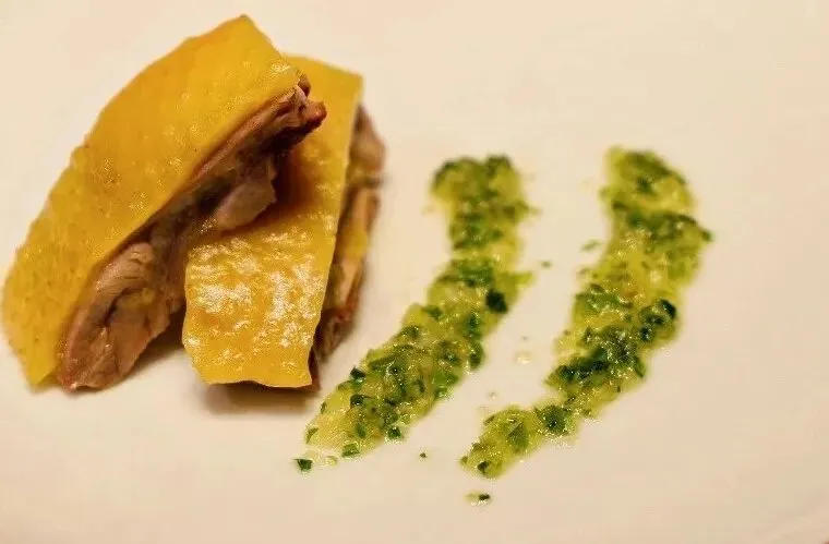 巴马香猪的丰腴与深海鱼子酱的鲜爽,演绎一场高端食材的跨界对话。香猪经慢烤至外皮金脆酥香,内里肉质细嫩多汁,点缀的鱼子酱爆浆迸发咸鲜,油脂香气与海洋风味在口中交织,尽显创意巧思。