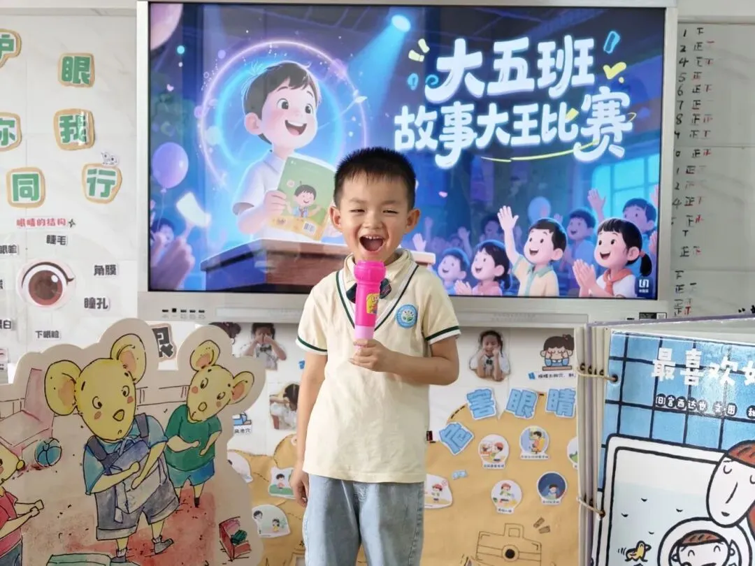各班级开展了"故事大王"比赛,遴选出优秀选手参加园级“故事大王”比赛。比赛要求幼儿选择自己最喜欢的绘本故事进行讲述分享。比赛过程中,孩子们自信地站在舞台上,用稚嫩的声音讲述着一个个有趣的故事,赢得了老师和同伴们的热烈掌声。