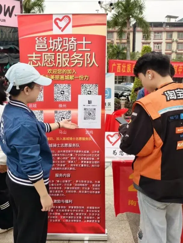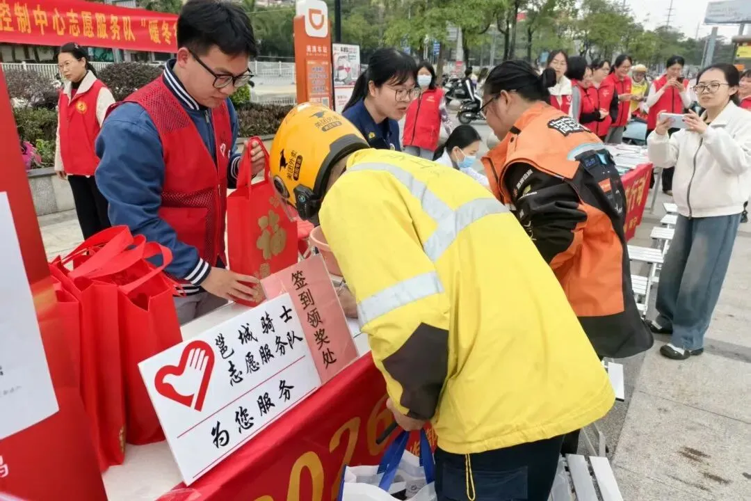 2月5日,寒意未散,温情已浓。中共南宁市委社会工作部、共青团南宁市委员会联合市公安局交通管理支队、市消防总队、市邮政管理局、武鸣供电局、广西疾控中心等单位,在武鸣区康和城商业广场邕新驿站举办2026年南宁市青年志愿者“暖冬行动”武鸣区专场活动,为30名快递员、外卖员代表送去冬日温暖与新年祝福。