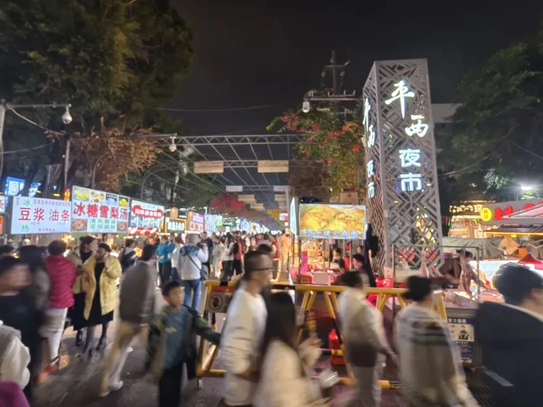 (平西夜市)在夜市我主要吃了冰粉豆花,牛杂,卷筒粉,冰粉豆花感觉不错,冰冰凉凉,也不算很甜。其余都是以逛街感受人文为主。吃的其实都差不多,排队人多的跟着吃大概率不踩雷,然后自己喜欢吃什么就买来吃就行,没必要提前做攻略。